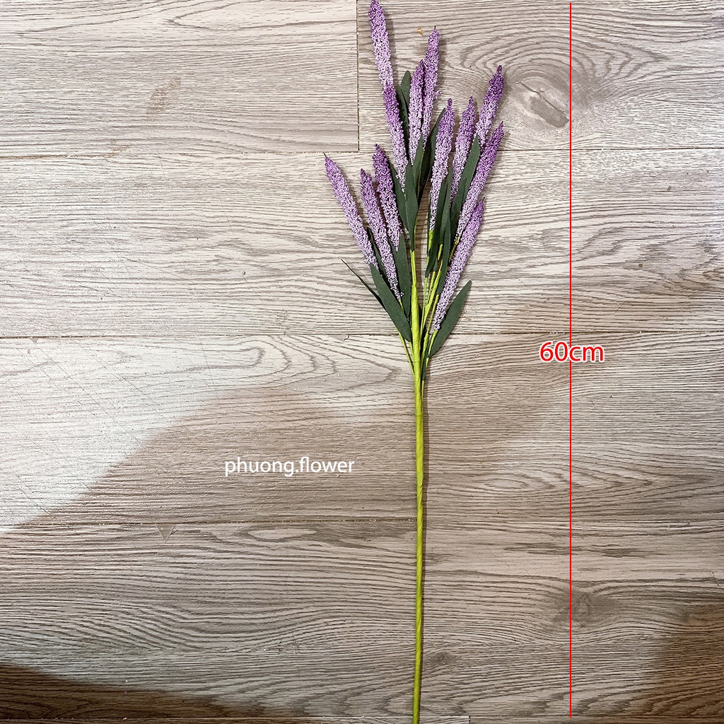 Cành hoa oải hương lavender giả nhân tạo dài 60cm 12 hoa loại lá nhọn đậm cắm chậu trang trí tuyệt đẹp