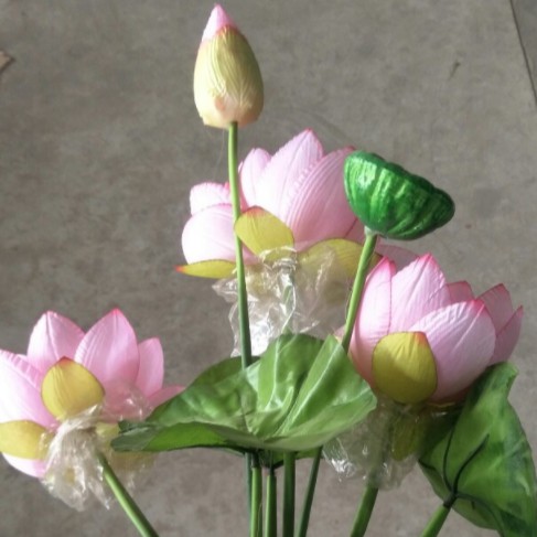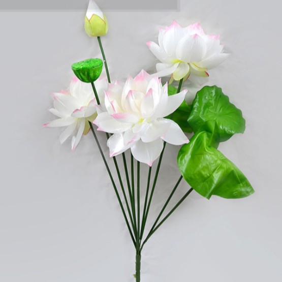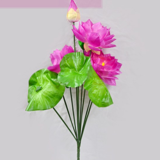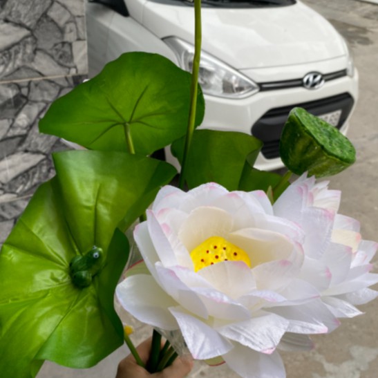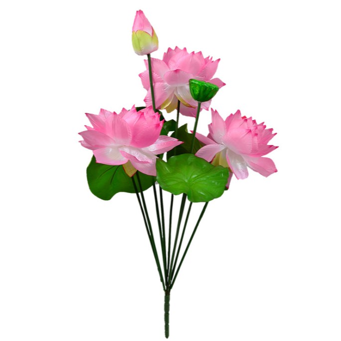 - Cây gồm 8 cành : 3 bông lớn, 1 nụ, 3 lá lớn và 1 đài sen.