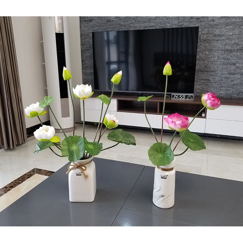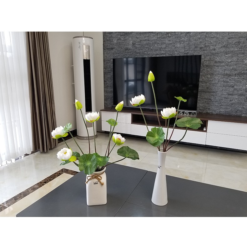 Giới thiệu Cành hoa sen cao cấp 2 bông 1 nụ kèm lá tuyệt đẹp -Hoa giả trang trí phòng khách