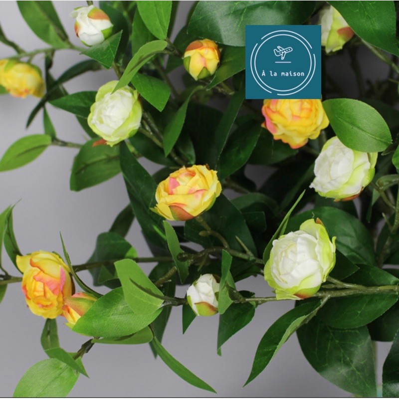 L• Chi tiết : Một cành 3 nhánh lớn hoa lá và nụ, cành lá xanh mướt, thân cành hoa được làm chi tiết tỉ mỉ theo phong cách Châu Âu. Trang trí không gian tươi mới.