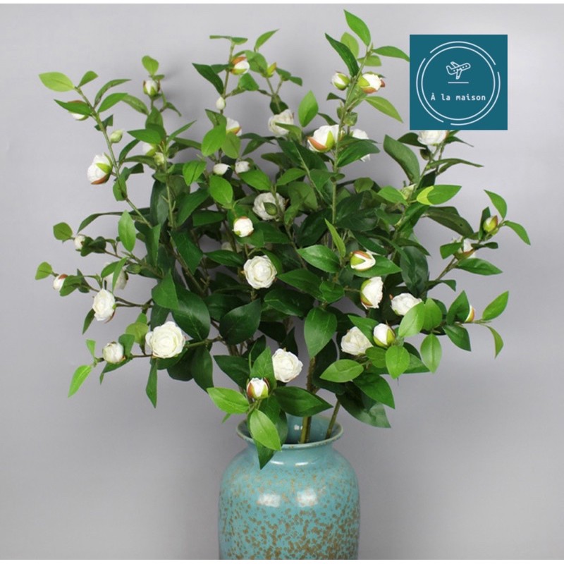 Giới thiệu Cành hoa sơn trà nhân tạo cao 90cm trang trí không gian xanh mát tươi mới