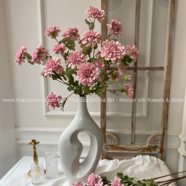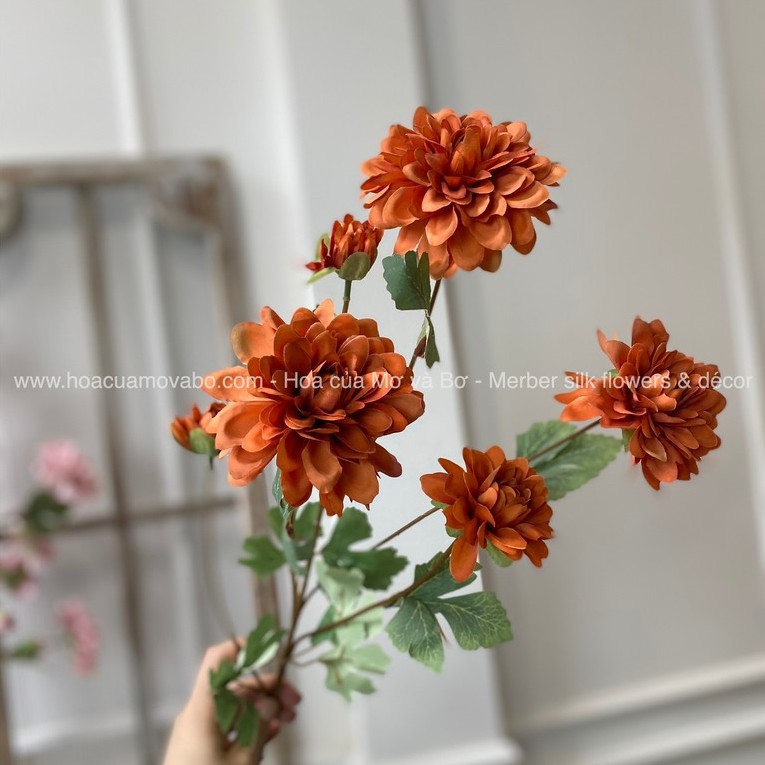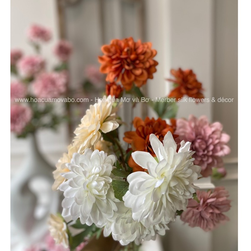 Giới thiệu Cành Hoa Thược Dược Giả Cao Cấp Merber Loại 4 Bông 2 Nụ - Cành Hoa Khô Lụa Decor Trang Trí Nhà Cửa, Văn Phòng, Để Bàn