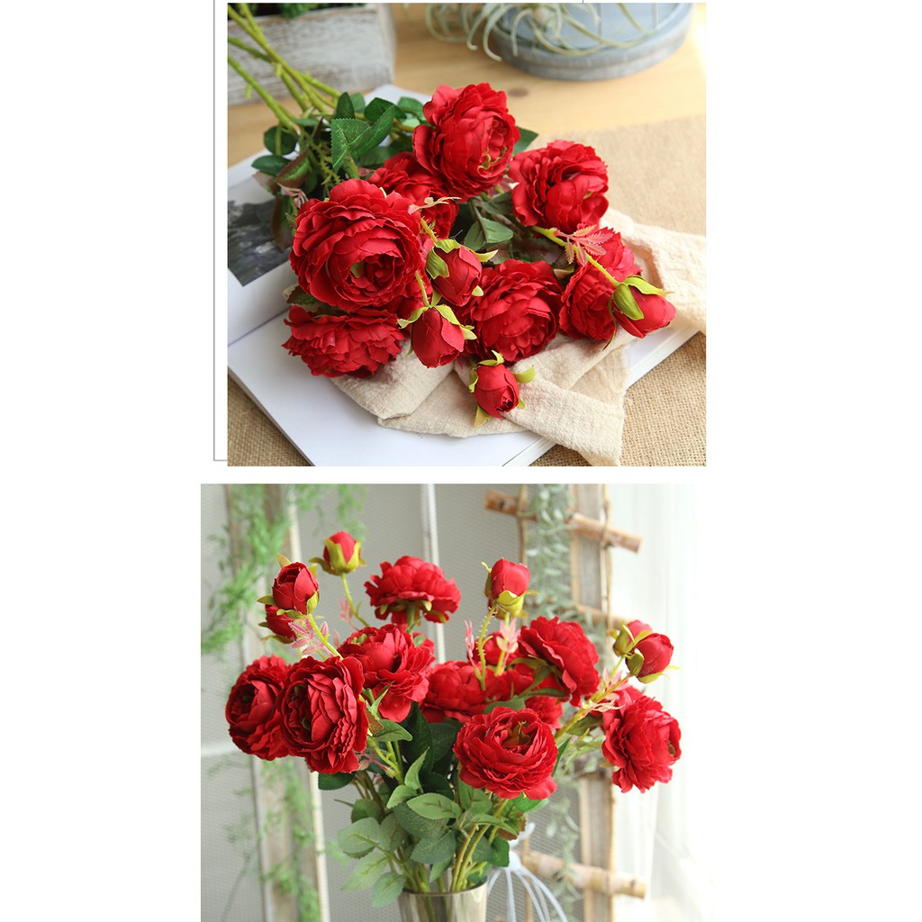 Cành hồng mẫu đơn giả nhập khẩu trang trí nhà cửa decor hoa cô dâu hoa cưới