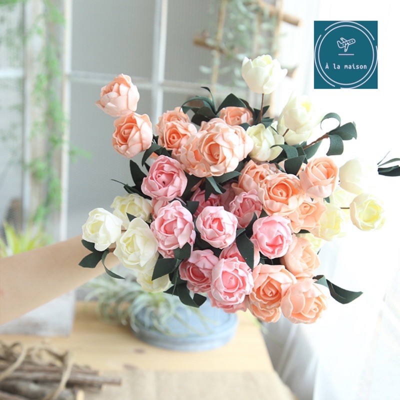 L• Chi tiết : Một cành gồm 6 đầu bông 4cm và lá được làm từ mút PE , màu sắc phối hài hoà và được làm chi tiết tỉ mỉ và chất lượng theo phong cách Châu Âu. Decor không gian sống sang trọng.