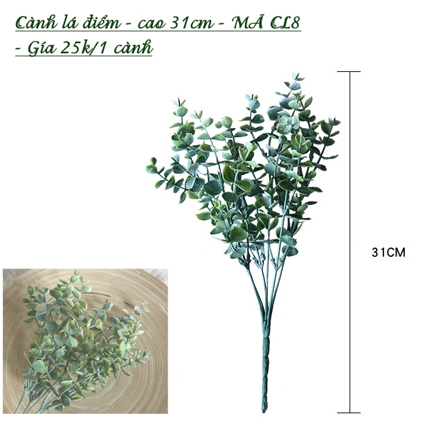 Cành Khuynh diệp lá NHỎ - cành thấp cao 31cm - hoa giả nhân tạo - MÃ CL8💗 Kích thước sản phẩm