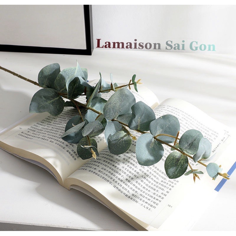Cành lá bạch đàn nhân tạo cao cấp 70cm, Hoa lá giả, hoa lụa cao cấp, lá decor trang trí hoa cô dâu