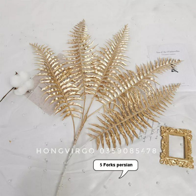 Nhà cửa & Đời sống > Trang trí nhà cửa > Hoa trang trí || Cành lá dương xỉ giả phủ vàng mix hoa hoặc đào đông siêu đẹp - cành 5 lá dài 60cmCòn hàng