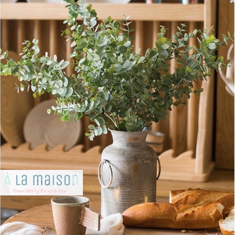 Cành lá khuynh diệp nhân tạo cao cấp 68cm nhiều nhánh lá, lá giả lá decor trang trí sang trọng