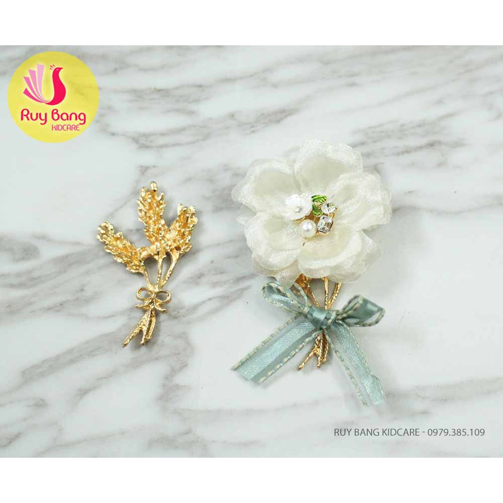 Cành lá kim loại, center đá đính hoa vải handmade