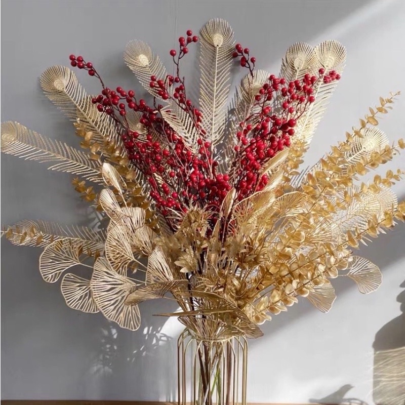 Cành lá rẻ quạt, cành lá tai chuột, đuooi công, duong xỉ phủ vàng cao cấp mix với đào đông hay cắm điểm siêu đẹp