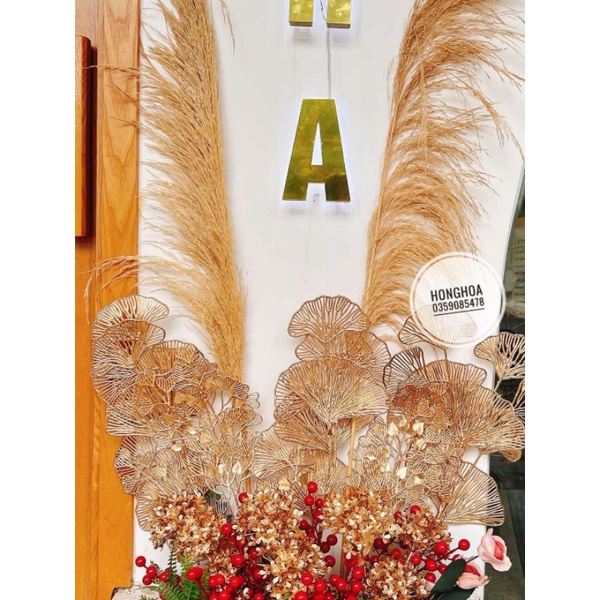 Nhà cửa & Đời sống > Trang trí nhà cửa > Hoa trang trí || Cành lá rẻ quạt, tai chuột, cành đào đông giả phủ vàng mix đào đông siêu đẹp.Còn hàng