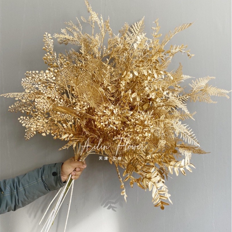 Nhà cửa & Đời sống > Trang trí nhà cửa > Hoa trang trí || Cành lá rẻ quạt, tai chuột phủ vàng mix đào đông rất đep cao cấp 70-90cm (ảnh và clip quay chân thật)Còn hàng