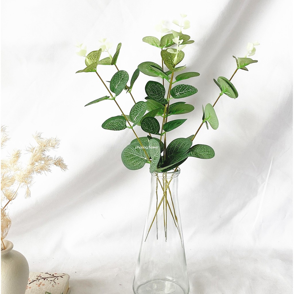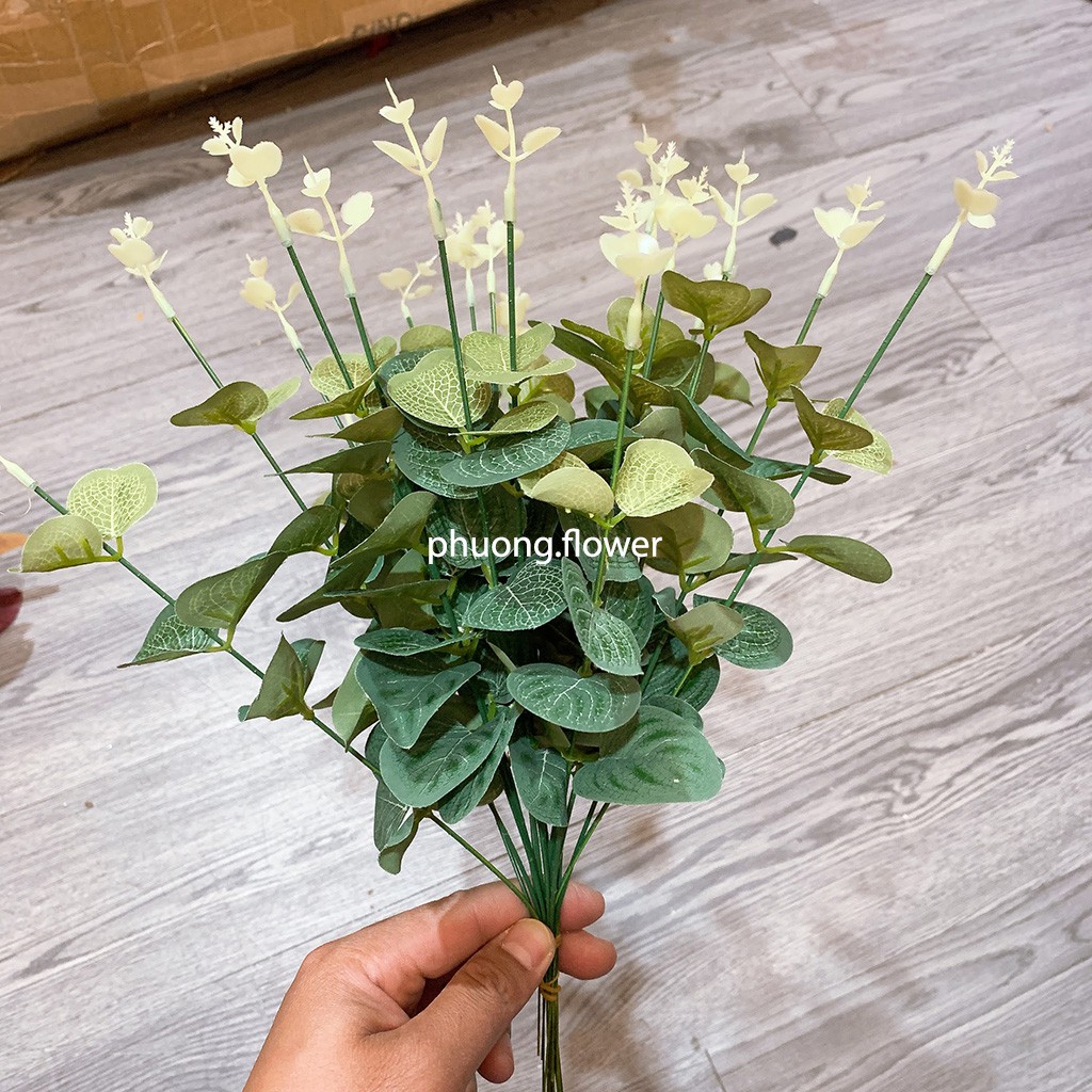 Cành lá táo lá bạch đàn giả nhân tạo trang trí loại 38cm và 33cm lá tròn dùng trang trí bó hoa