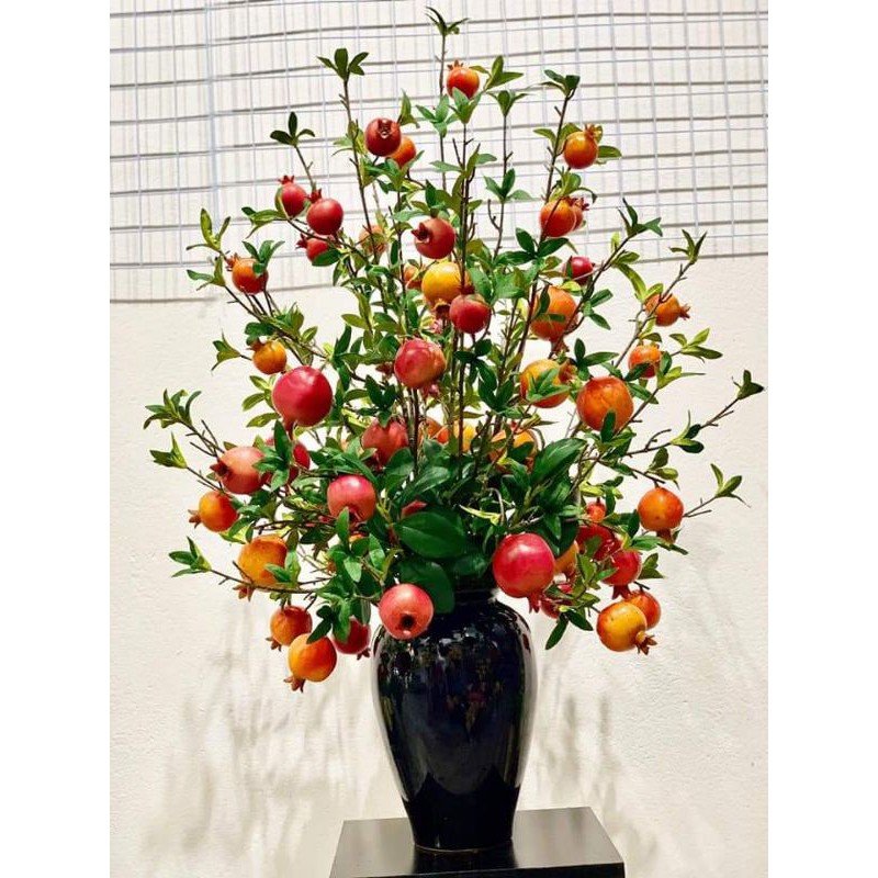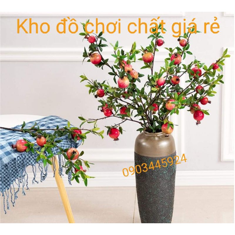 * Kích thước : Cành lựu giả có 5 quả cao 85cm,kích thước quả : 7 * 7 * 5,5 * 5,5 * 5,5cm.*Chất liệu: xốp phủ nhựa cao cấp như thật,lá vải,thân nhựa bọc lõi thép.
