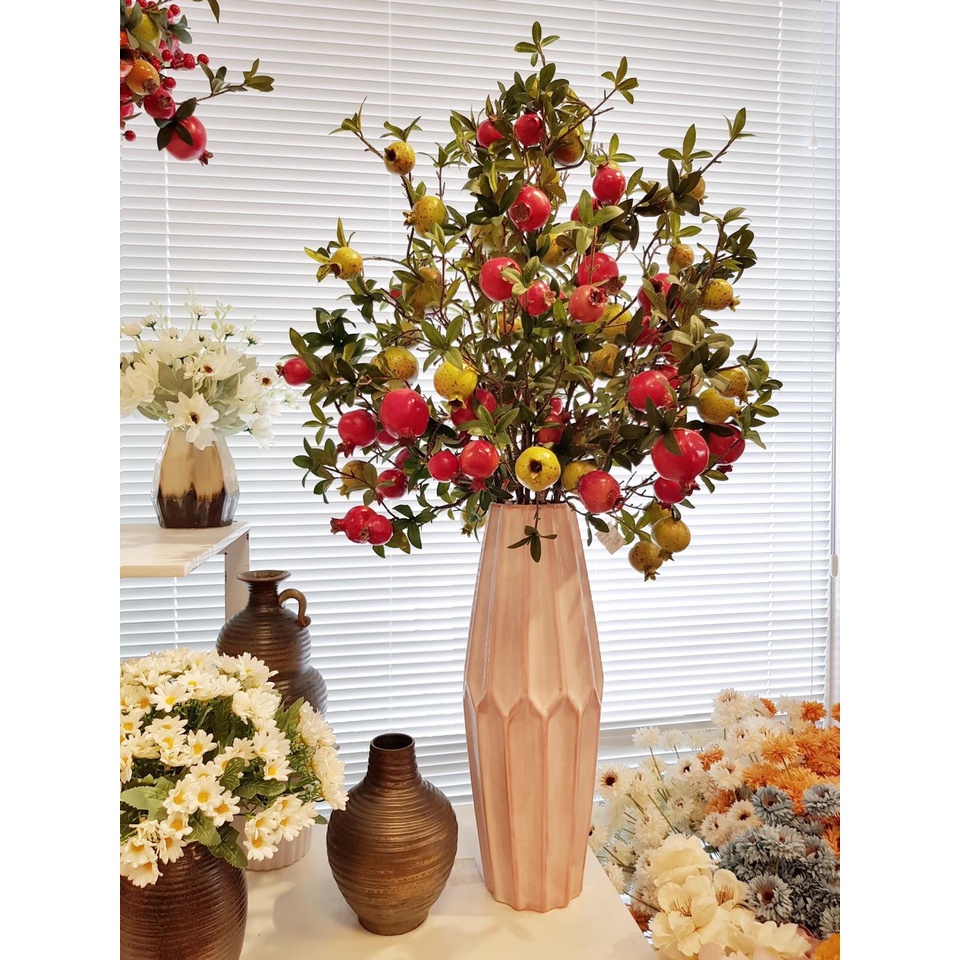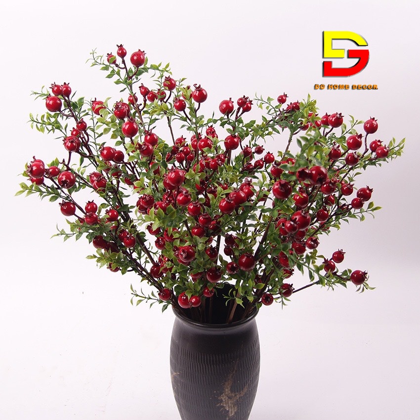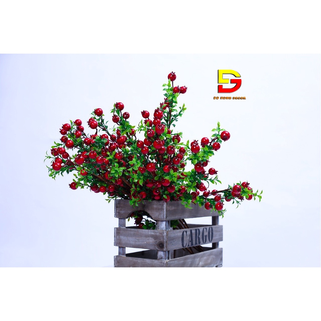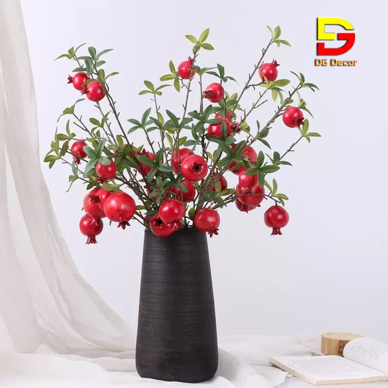 Giới thiệu Cành Lựu Giả - Cành Lựu Đỏ Tài Lộc Cao Cấp Trang Trí Nhà Cửa Đón May Mắn DG-35
