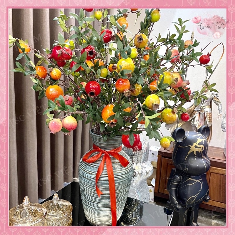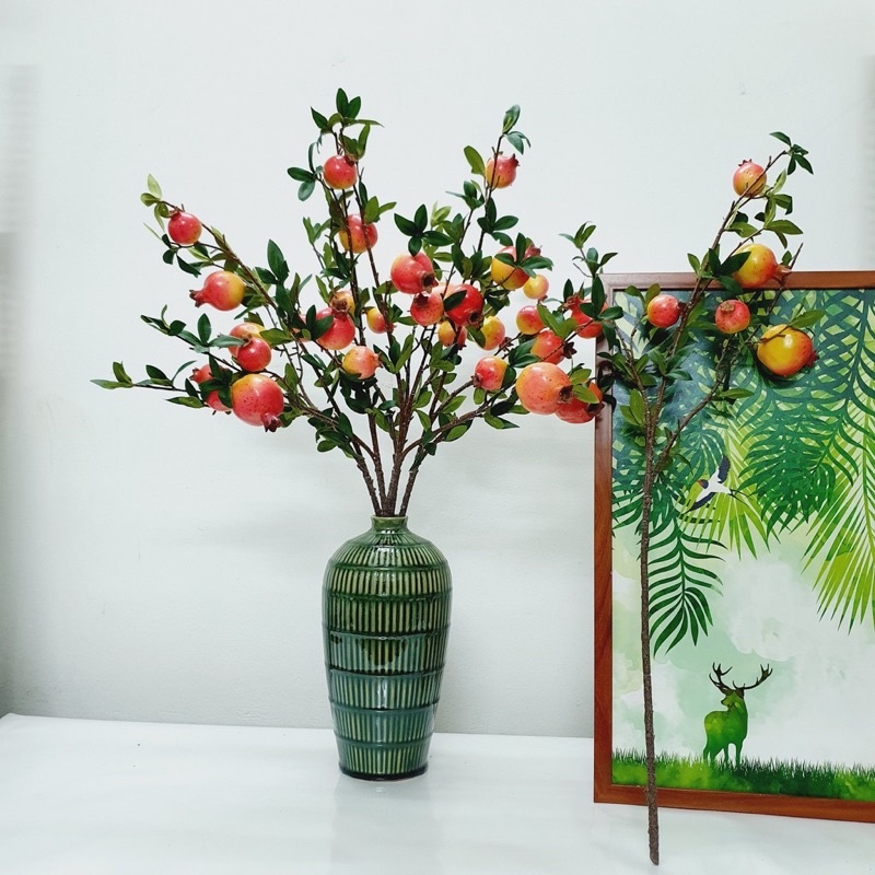 Cành lựu giả dùng trang trí nội thất, trang trí studio, spa,Cành quả lựu là biểu tượng của sự sung túc, no ấm, là món quà tân gia hay khai trương đầy ý nghĩa.