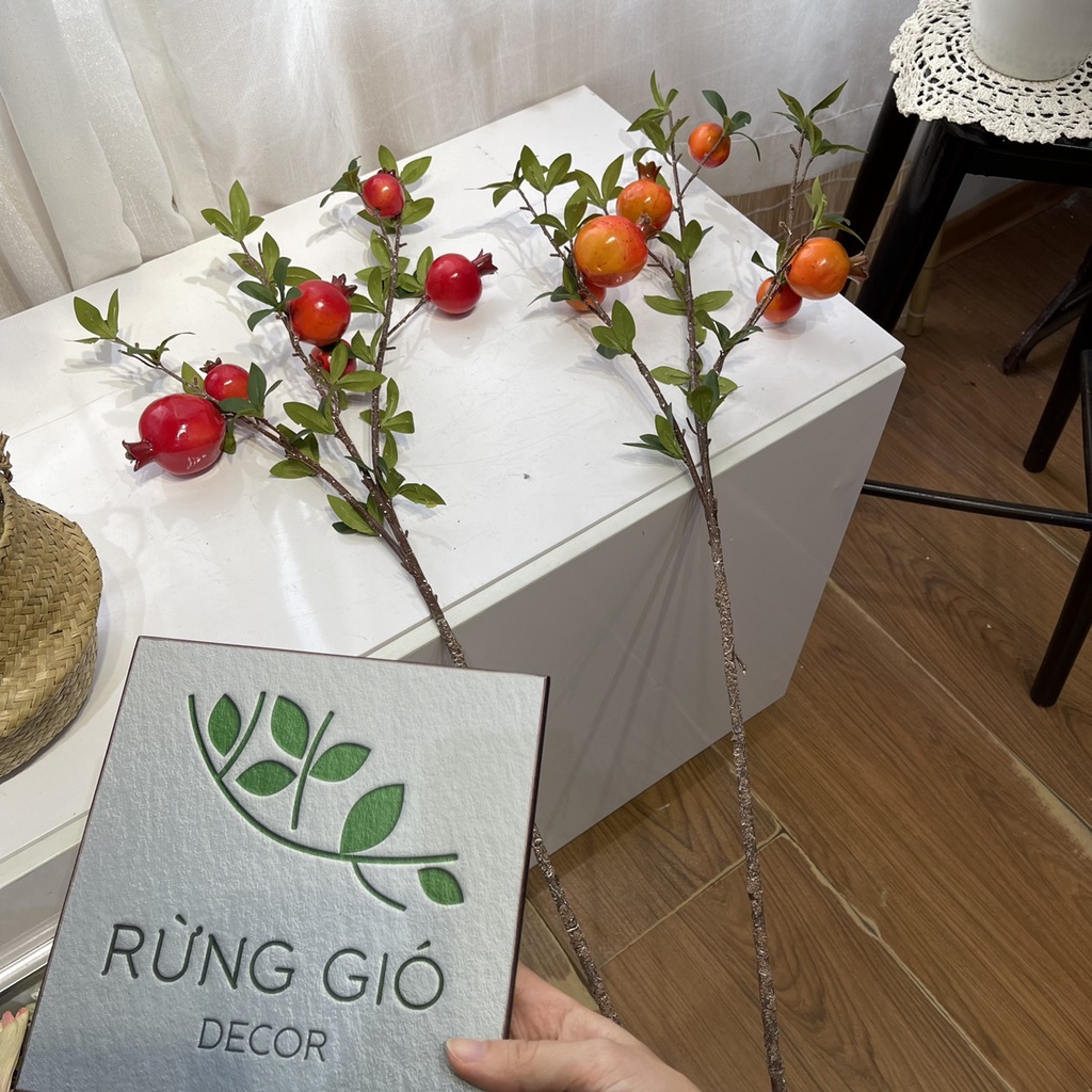 CÀNH LỰU THÂN GAI TRANG TRÍ SIZE TO, gồm 1 cành 6 quả dài 82cm có gai ở thân giống thật 99% .