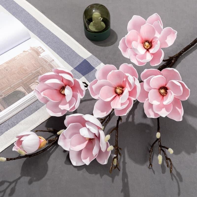 Giới thiệu Cành Mộc Lan giả Cao Cấp - Cành Mộc Lan giả chất PU 6 bông to đẹp, hàng loại 1 chuẩn nhập khẩu
