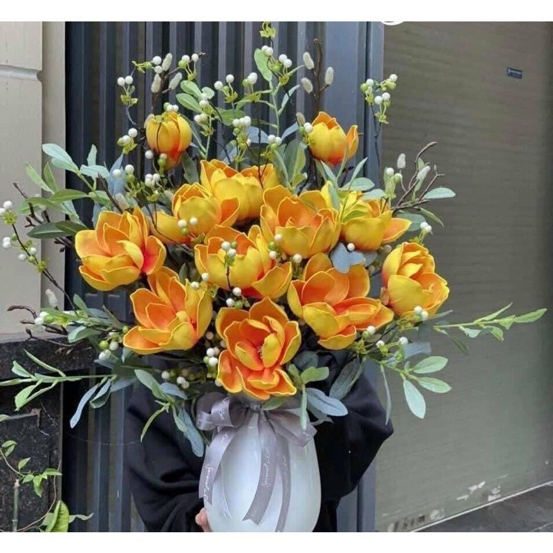 Nhà cửa & Đời sống > Trang trí nhà cửa > Hoa trang trí || Cành Mộc Lan giả Cao Cấp - Cành Mộc Lan giả chất PU 6 bông to đẹp, hàng loại 1 chuẩn nhập khẩuCòn hàng