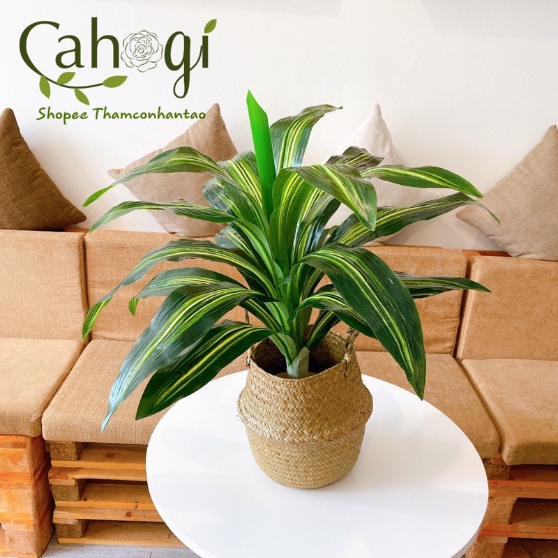 Cây thiết mộc lan nhựa được làm giống thật. từng chiếc lá mềm mỏng được in sọc vàng sắc nét, tỉ mỉ từng công đoạn. thân cây được làm từ gốc tre khô cứng cáp và thận tiện cho việc trồng vào các cậu đất, cát hoặc chậu cây nhồi xốp.
