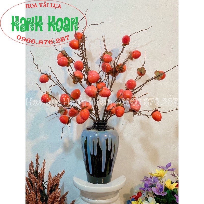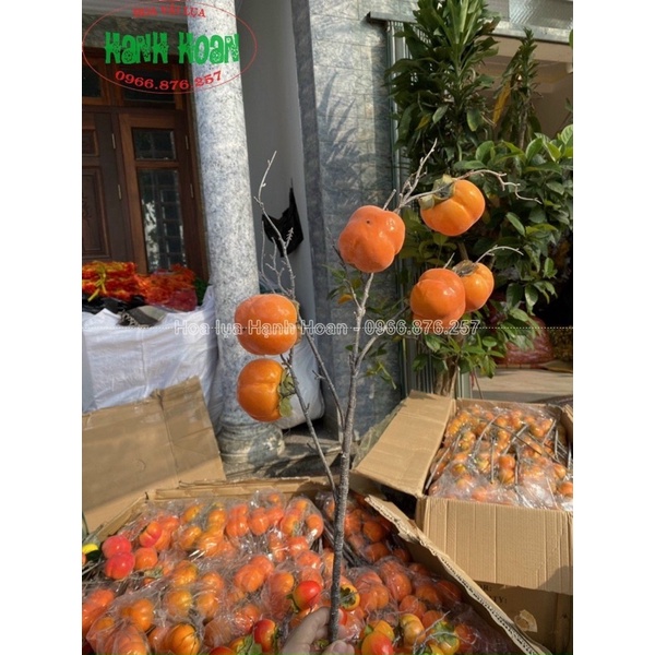 Cành quả giả- Cành quả hổng 8 -9 quả thân mốc trang trí siêu đẹp
