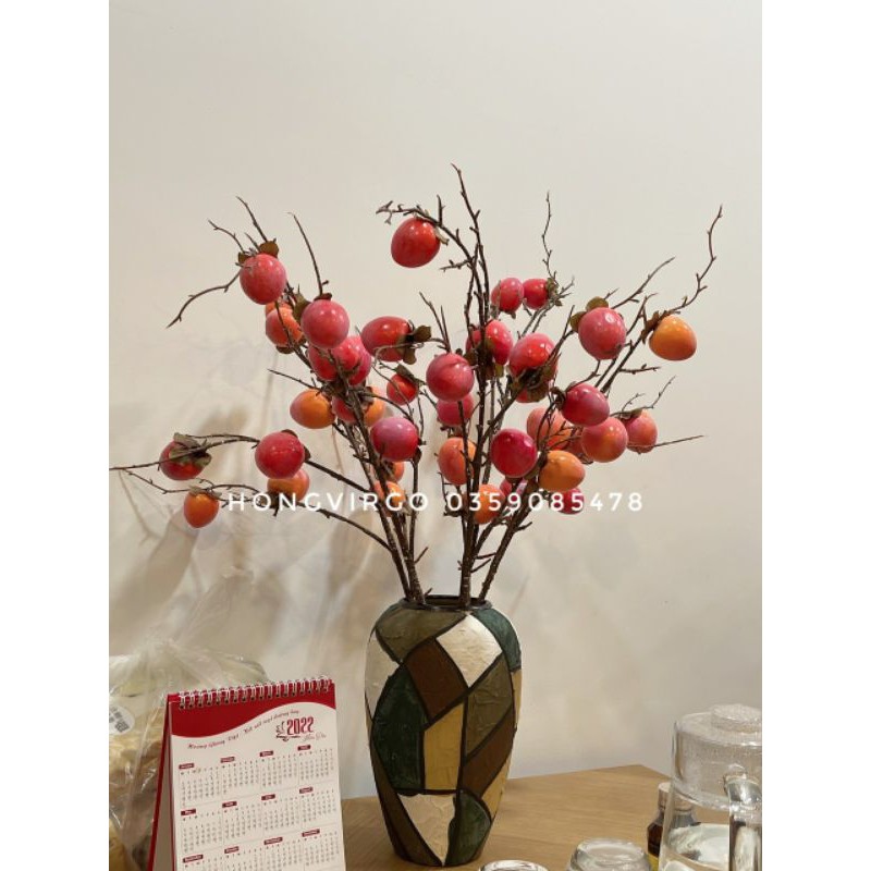 Cành Quả Hồng Giả - Cành Quả Hồng Dài 90cm- Shop có 2 loại quả dài và quả tròn khách nhé!