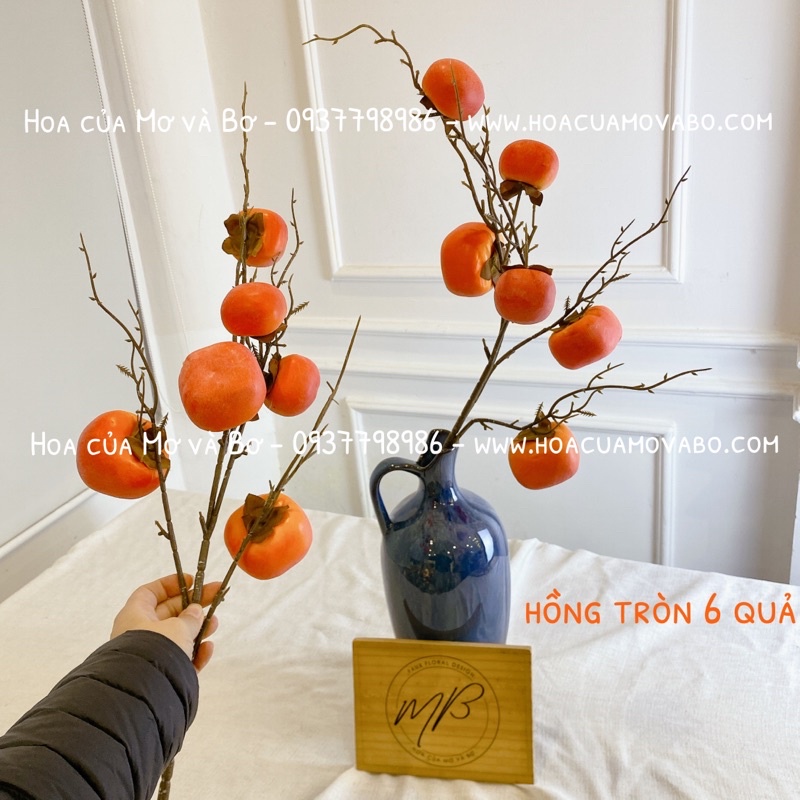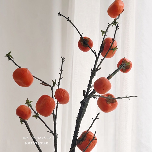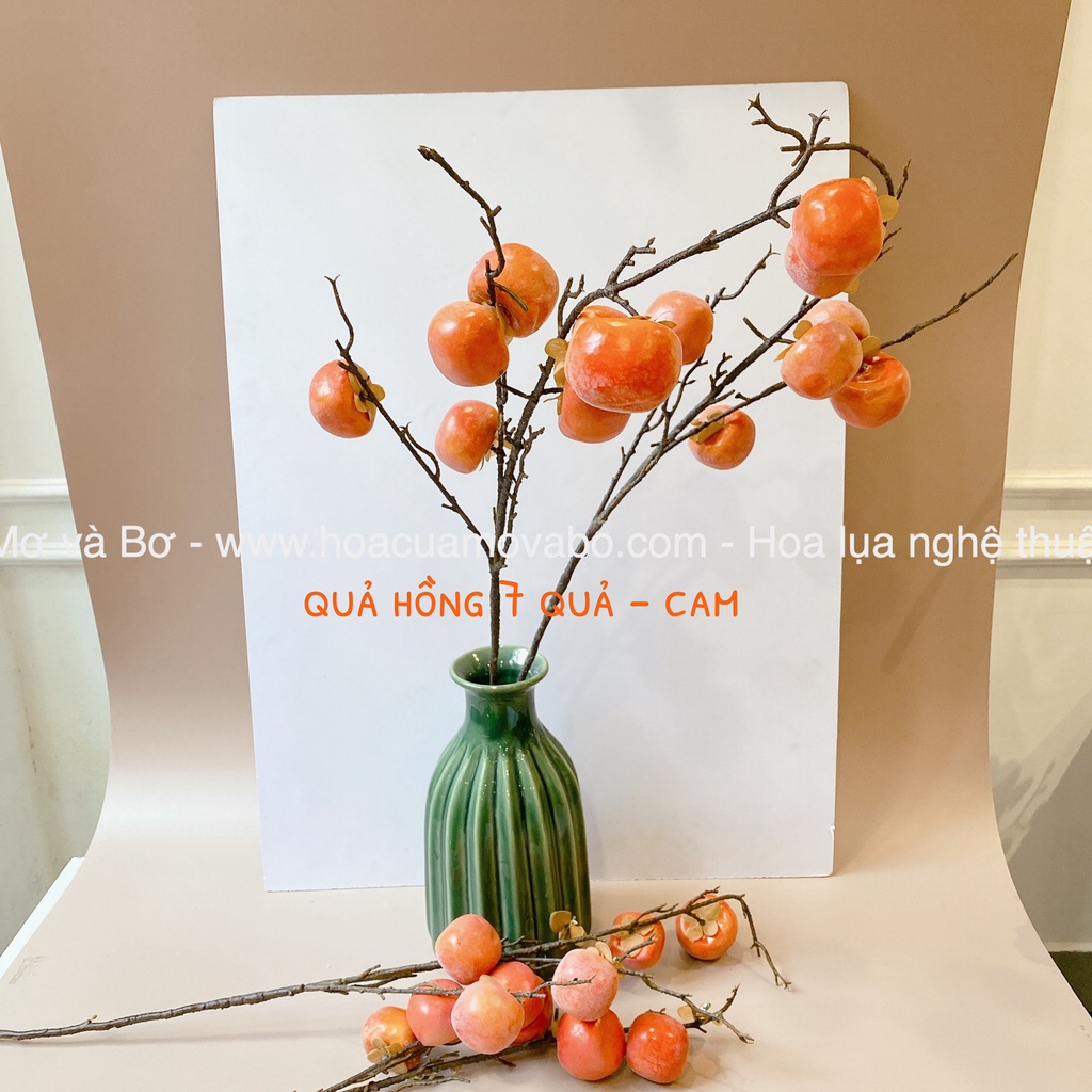Cành Quả Hồng Giả Cáo Cấp Merber (Mơ & Bơ) Cành 3/6/7/9 Quả - Cành Khô Trang Trí Decor Nhà, Phòng Khách