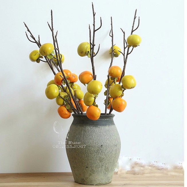 Cành Quả Hồng Giả -Decor Trang Trí Nhà Cưa- Chất Liệu Cao Cấp