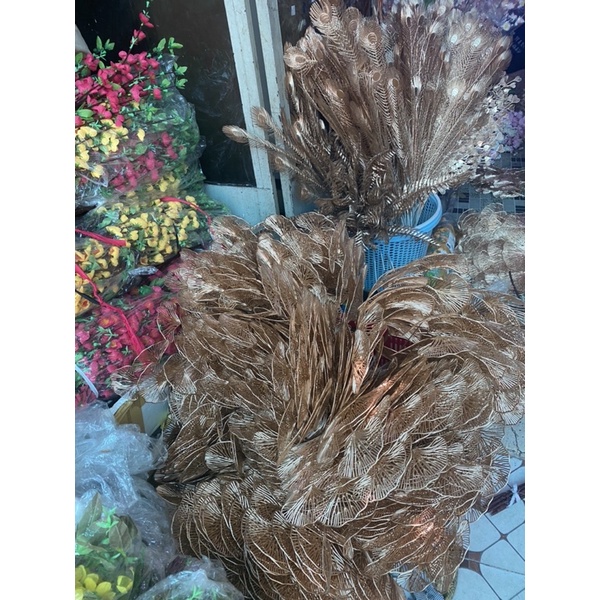 Nhà cửa & Đời sống > Trang trí nhà cửa > Hoa trang trí || Cành rẽ quạt màu đồng 9 lá, lông công, lá táo đồng..cây giả trang trí dài 60cmCòn hàng