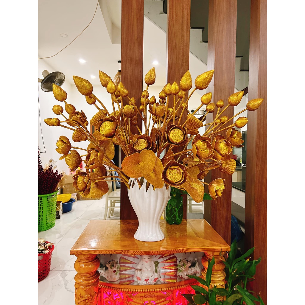 CÀNH SEN NHŨ VÀNG 🌸🌸🌸😍😍 Năm nay nghỉ tết sớm nên e gom sớm nhé. Đơn này nha E gom cành sen nhũ siêu siêu đẹp ạ