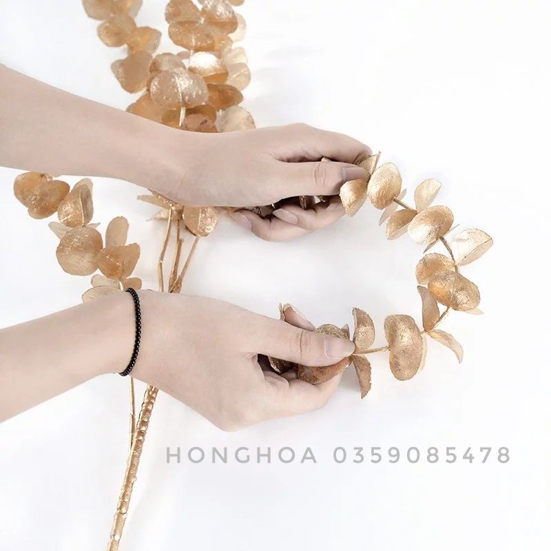 Nhà cửa & Đời sống > Trang trí nhà cửa > Hoa trang trí || Cành Tai Chuột Giả Phủ Nhũ Vàng Mix Đào Đông Siêu XinhCòn hàng