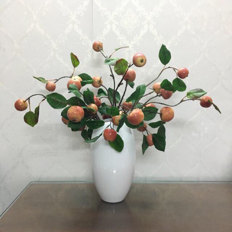 Cành dài 98cm , có 5 quả táo tocó 2 màu : đỏ đậm và đỏ vàng