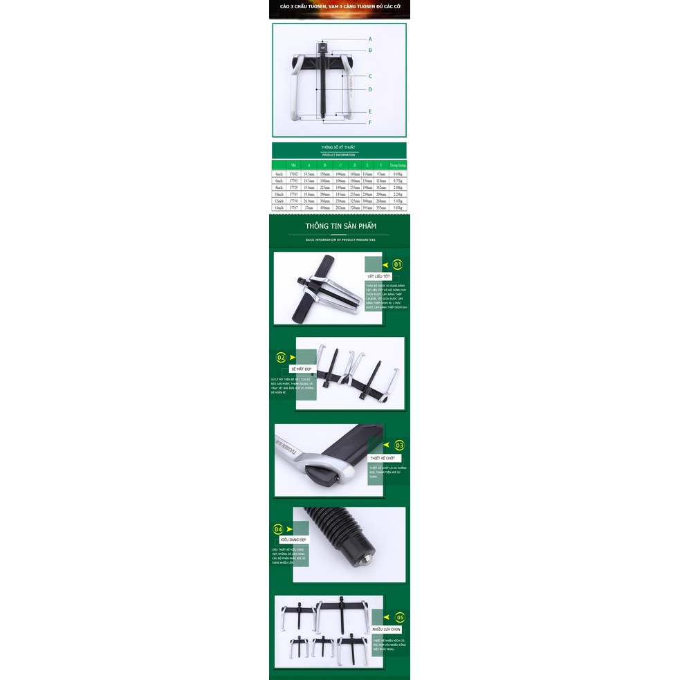 Nhà cửa & Đời sống > Dụng cụ & Thiết bị tiện ích > Dụng cụ > Kìm || Cảo 2chấu TUOSEN, vam 2 càng TUOSEN đủ các kích cỡ 4inch, 6inch, 8inch, 12inch, 14inchCòn hàng