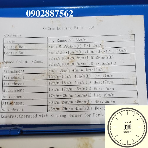 Cảo bạc đạn chữ H Đài LoanCảo bạc đạn, vòng bi chuyên dụng, với 7 loại đầu cảo khác nhau 8 – 10 – 12 – 15 – 17 – 20 – 25 mm có thể cảo hầu hết các loại bạc đạn trên xe máy.