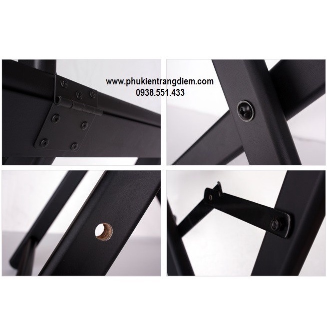 QUÝ KHÁCH LƯU Ý: Sản phẩm là hàng nhập khẩu cao cấp chất liệu khung nhôm được hàn cứng rất chắc chắn chịu tải trọng cao, chống va đập, chống thấm nước, chống cháy, độ bền cao. Không phải loại bằng gỗ thông thường cắt ghép dán keo và sơn màu dễ hư hỏng trong quá trình sử dụng. Nên quý khách cần lưu ý về chất liệu sản phẩm.- Ghế Make Up Studio - Ghế Đạo Diễn - Ghế Ngồi Sự Kiện Sân Khấu được cấu tạo với khung hợp kim nhôm Series 7000 (Alumium 7000) cứng chắc và độ bền rất cao.