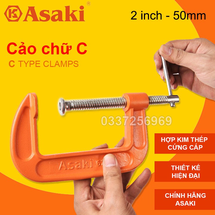 - Cảo chữ C Asaki 2inch-50mm được chế tạo từ chất liệu hợp kim thép nên cứng cáp, chịu được lực cao.Sản phẩm rất bền bỉ tạo sự chắc chắn và có độ bền cao, tránh cong vênh, không dễ bị hư hỏng như các loại thông thường. Gia công tỉ mỉ, công phu, đảm bảo độ chính xác cao, giúp công việc hoàn thành hiệu quả nhất.