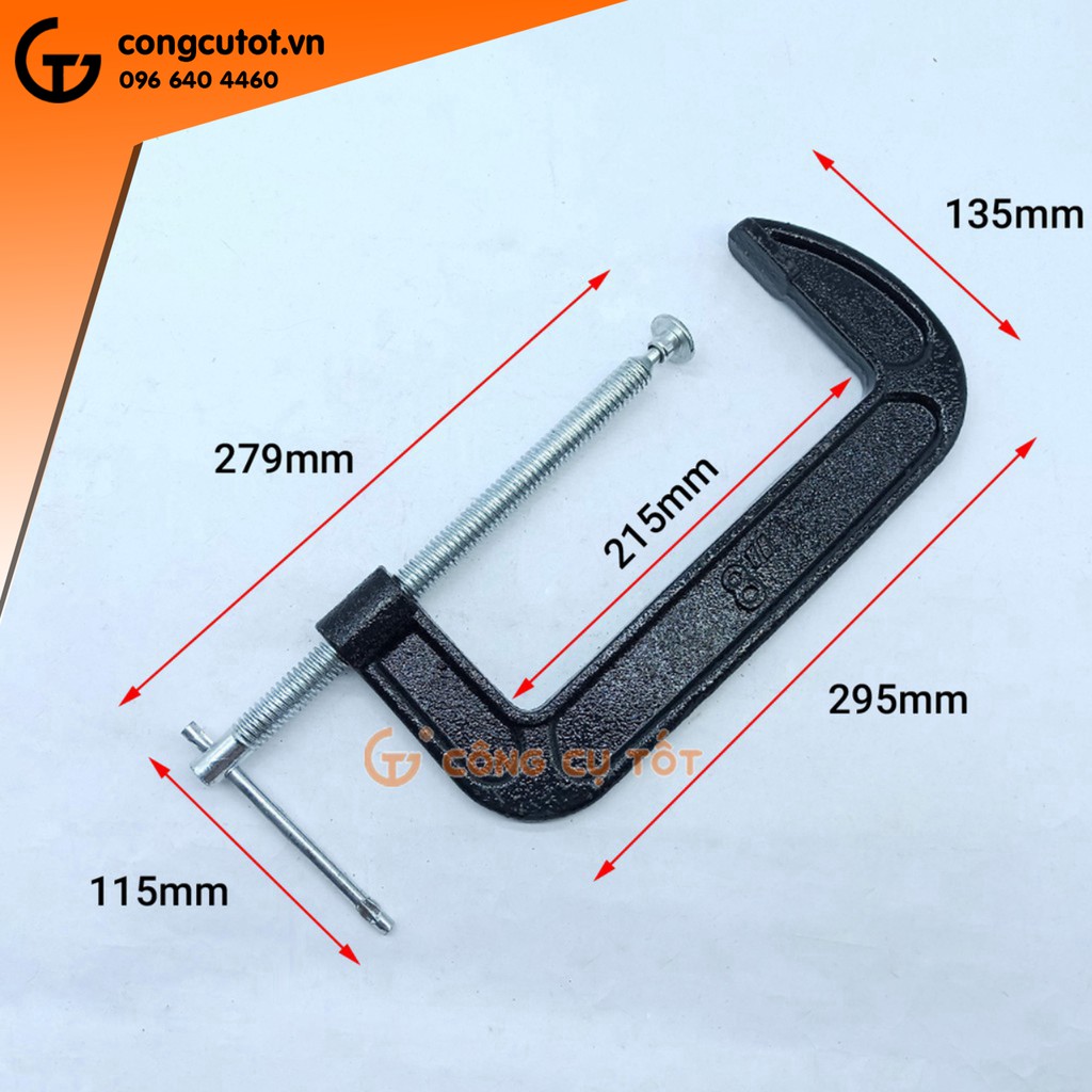 Cảo chữ C cỡ 8 inch màu đen Việt Nam được sử dụng rất nhiều đặc biệt với những người thợ cơ khí, thợ mộc,thợ gia công chế tác...