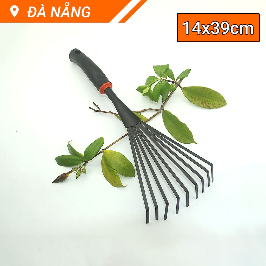 Cào cỏ 9 răng cán cao su 14x39cm làm từ thép hợp kim, bên ngoài sơn tĩnh điện sáng bóng, dễ dàng lau chùi, vệ sinh. Đây là một trong những dụng cụ cơ bản nhất của bộ dụng cụ làm vườn, giúp người dùng dễ dàng thao tác. Cào cỏ 9 răng dùng để thu gom cỏ, lá rụng.Làm từ thép hợp kim, bên ngoài sơn tĩnh điện sáng bóng, dễ dàng lau chùi, vệ sinh