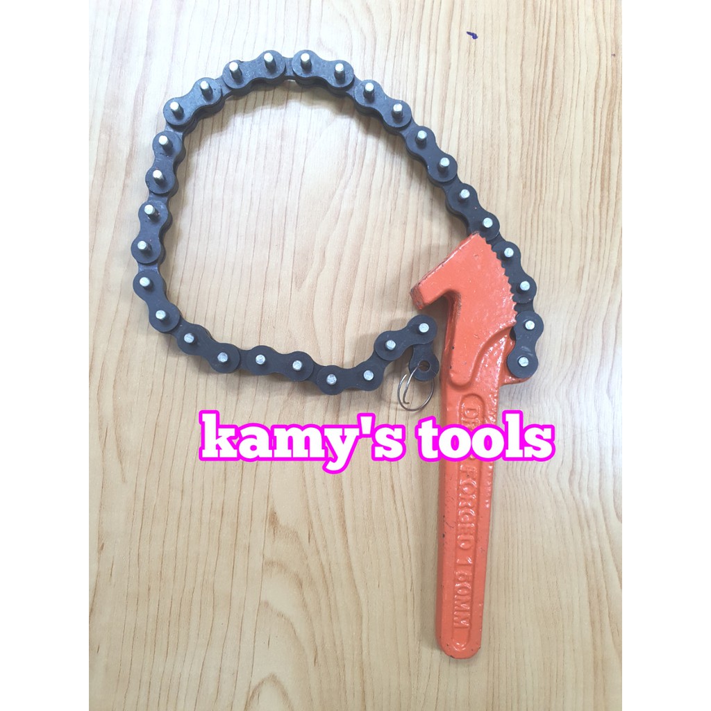 Cảo cờ lê mở lọc dầu nhớt bằng dây xích cán dài 150mm chiều dài xích là 400mm chuyên dùng để tháo mở lọc nhớt lọc dầu trong xe ô tô. Phần cán có răng cưa để ngậm chặt phần xích để siết tháo mở lọc nhớt lọc dầu. Hãy liên hệ với kamy's tools để biết thêm thông tin chi tiết sản phẩm.Giá US