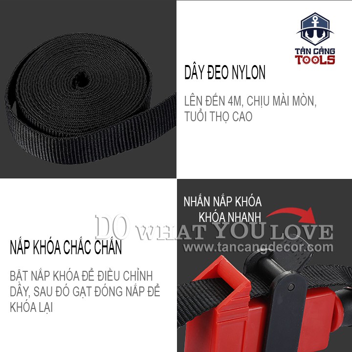 - Cảo Dây Đa Góc Duratec 4m được ứng dụng chủ yếu trong việc gia cố khung tranh gỗ, tủ gỗ nhỏ...