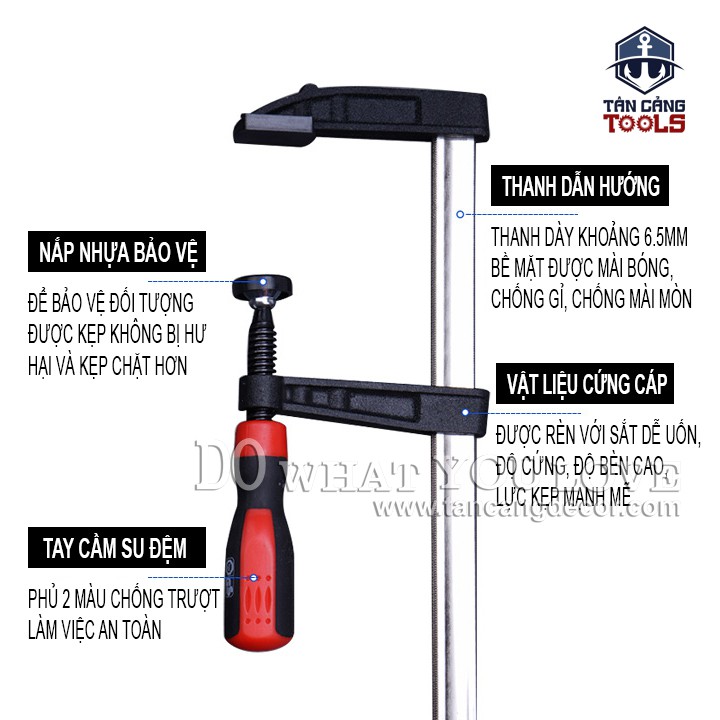 - Sản phẩm chuyên dùng để cố định tạm thời vật hoặc phôi, chi tiết cần gia công. Sản phẩm có đặc điểm nổi trội chắc chắn, bền với thời gian. Được sử dụng rộng rãi ở nhiều lĩnh vực khác nhau như mộc, hàn, xây dựng, gia công kim loại, cơ khí.