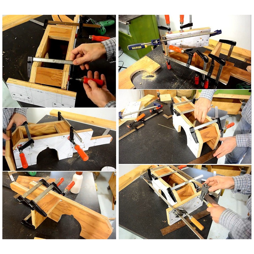 Trong nghề mộc, cảo chữ F thường được dùng để cố định vị trí của ván gỗ vào khung giường tủ, măt bậc cầu thang trước khi gắn hồ.