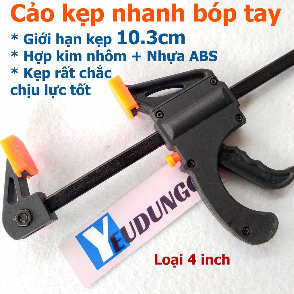 Cảo kẹp gỗ nhanh bóp tay chữ F:Giúp kẹp nhanh trong nhiều trường hợp. Công việc trở lên đơn giản hơn.