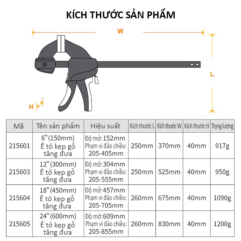 Cảo kẹp gỗ nhanh nhiều kích cỡ TACTIX.