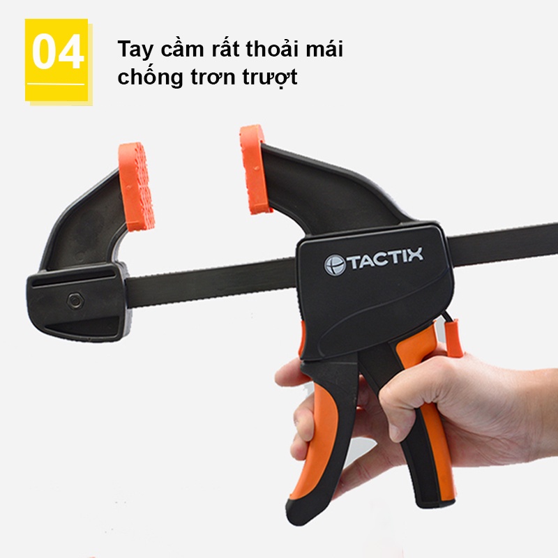 Cảo chữ G TACTIX 215605, ê tô kẹp gỗ tăng đưa, cảo kẹp nhanh công nghiệp nhiều kích cỡ, lực kẹp lớn, tay cầm chống trượt, có thể kẹp và mở bằng 1 hàm