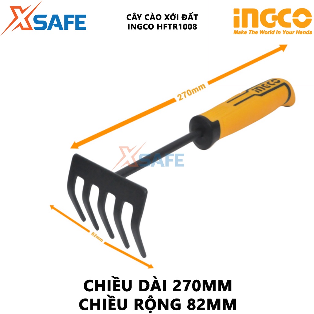 Giới thiệu Cây cào xới đất INGCO HFTR1008 Dụng cụ xới đất chiều dài 270mm, rộng 82mm, cán cầm 8.0mm dùng cào xới đất, làm vườn