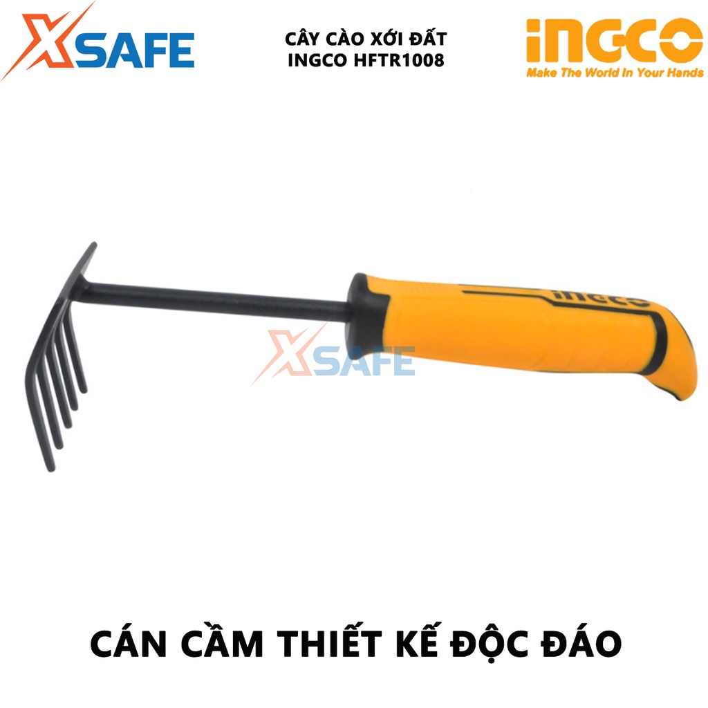 - Cây cào xới đất INGCO HFTR1008 làm từ thép hợp kim, bên ngoài sơn tĩnh điện sáng bóng, dễ dàng lau chùi, vệ sinh. Đây là một trong những dụng cụ cơ bản nhất của bộ dụng cụ làm vườn, giúp người dùng dễ dàng thao tác. Cây cào xới đất dùng để làm tơi đất, dù với cả đất cứng hay đất mềm đều dùng được rất linh hoạt.