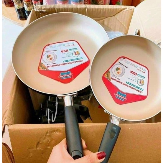 Nhà cửa & Đời sống > Dụng cụ nhà bếp > Chảo || Cặp 2 chảo Sunhouse lòng vàng chống dính 5 lớp size 18cm, 24cm. ĐÁY ĐEN , ĐÁY DẬP LOGO SUNHOUSECòn hàng