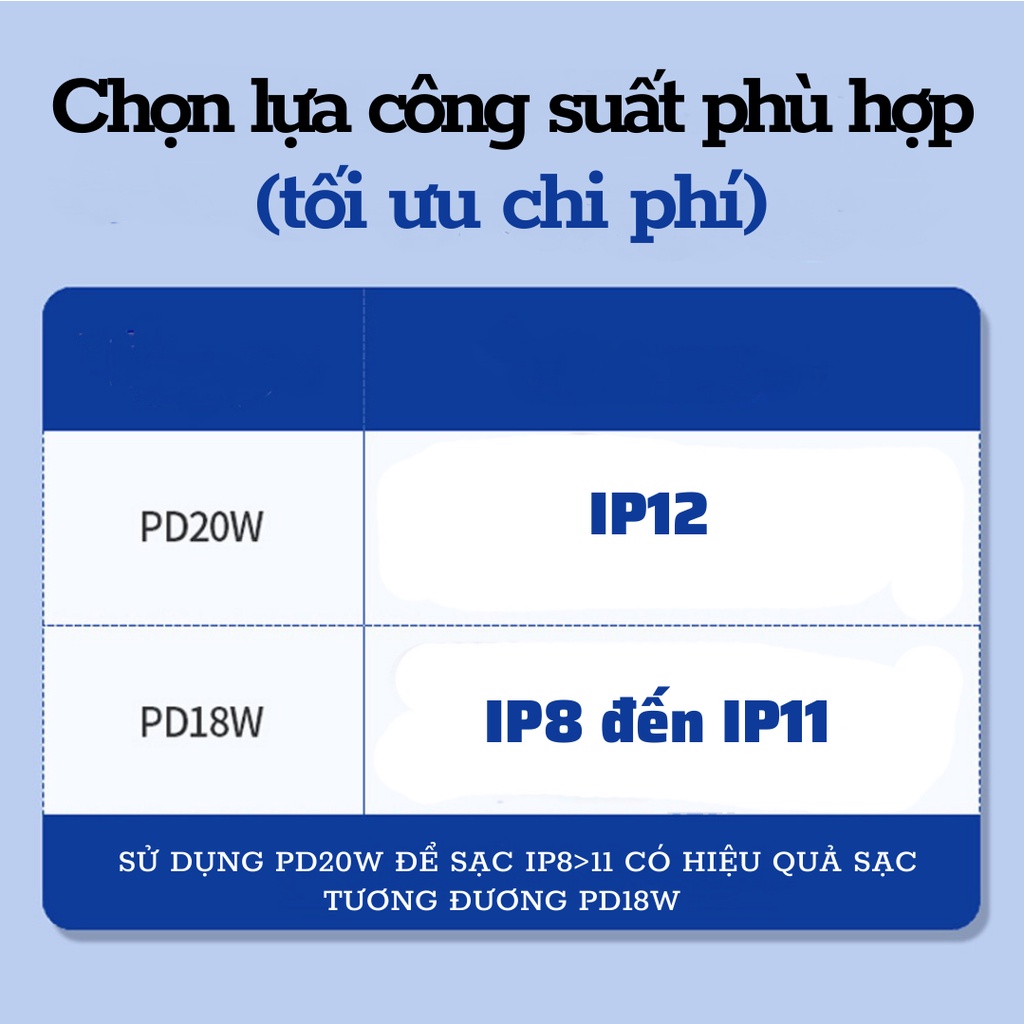 (Bộ sạc nhanh có tự động điều chỉnh công suất phù hợp với IPhone nên Anh/Chị không lo dùng bộ 20W sạc cho các đời IPhone thấp sẽ ảnh hướng tới Iphone đâu ạ)