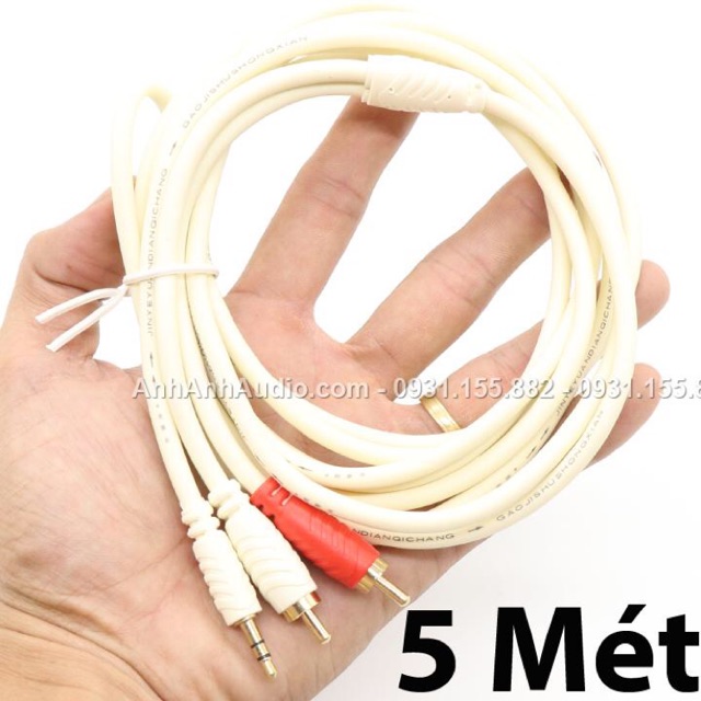 Cáp 3.5 mm chuyển ra 2 đầu hoa sen 5 mét , cáp 3 li ra av trắng dẻo